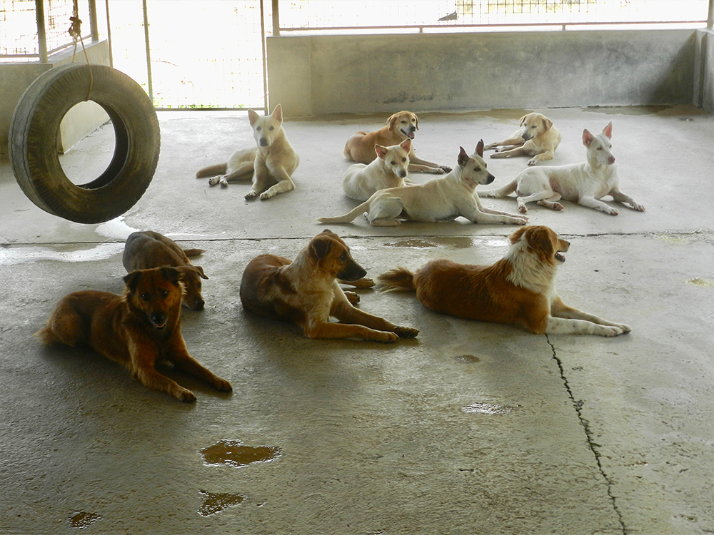 Our Filipino team keeps the sanctuary nice and clean, wash and care for the dogs and feed them 2 meals every day.